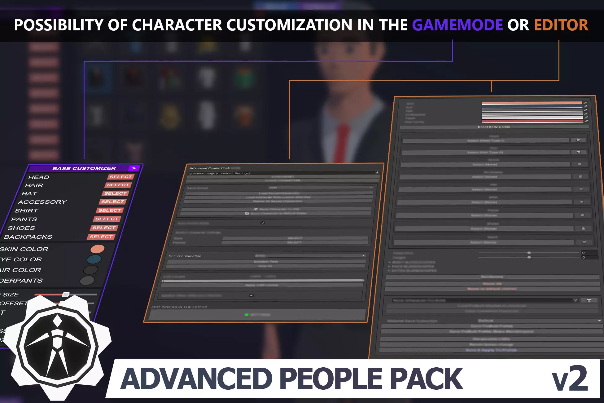The **Advanced People Pack 2** is a **flexible customizable system** designed to allow the creation of unique characters through various combinations of clothing items.